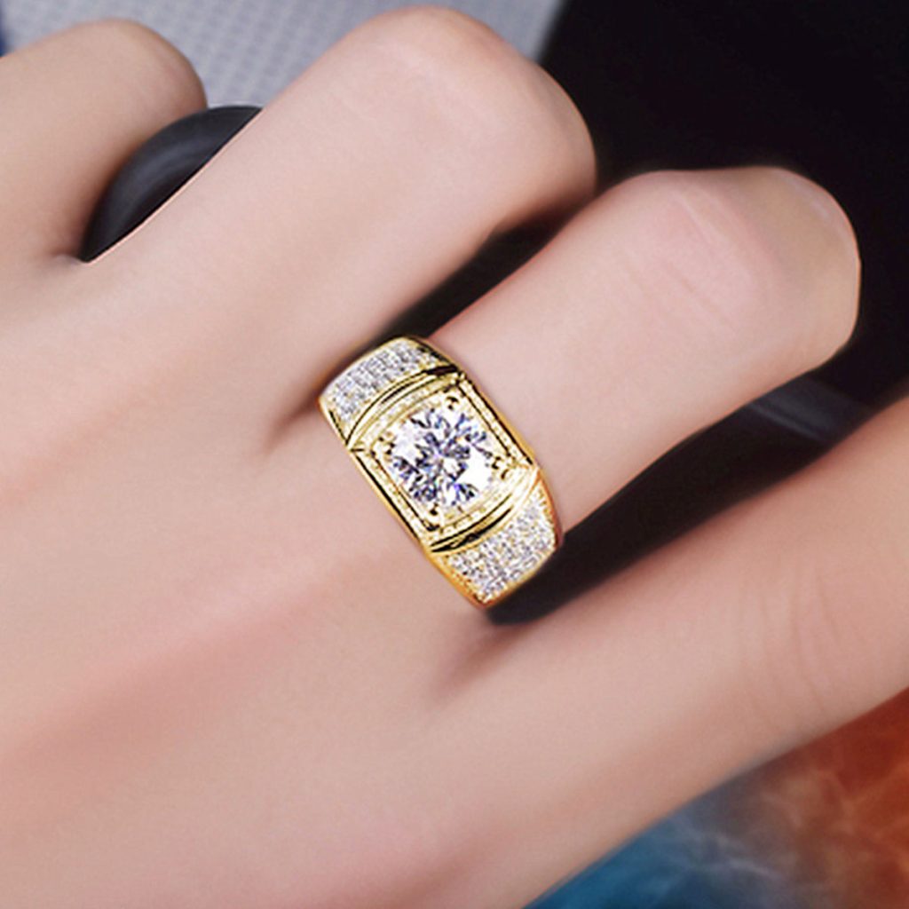 3-Carat Imitation Moissanite Diamond Gold-Plated Ring