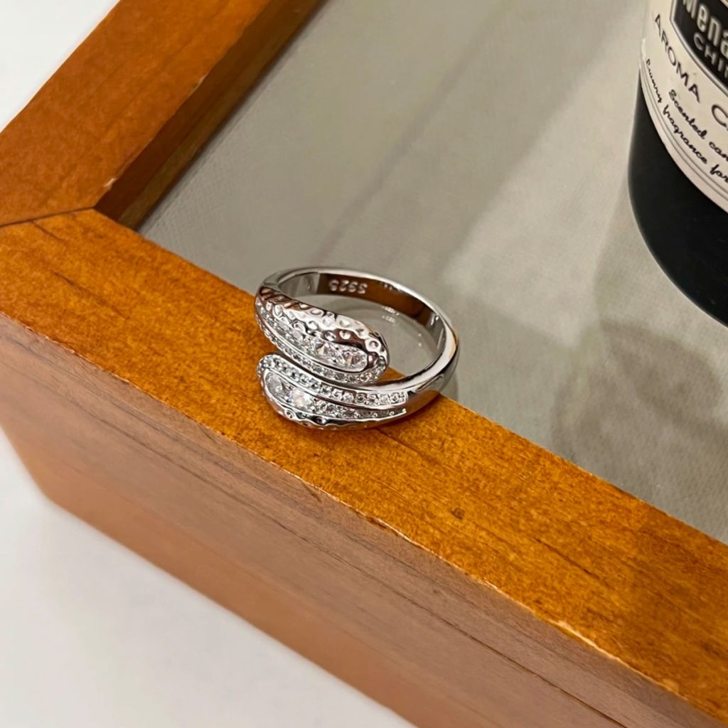 925 Silver “Truffle Croissant” Zirconium Ring